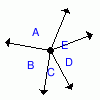 | 1. | In the figure below, two lines intersect to form ∠ A, ∠ B, ∠ C, and ∠ D.